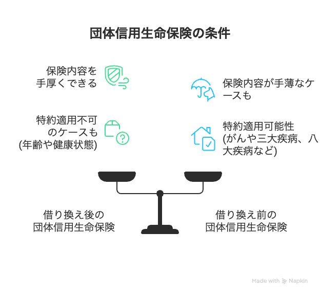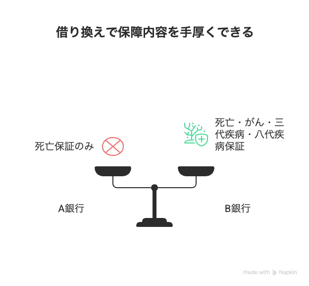 これまで加入していた団体信用生命保険より手厚くすることができる一方、手薄になる場合もあります。