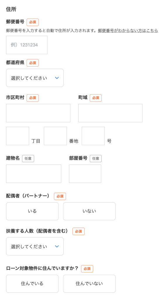 住所、配偶者、扶養人数などを入力します。