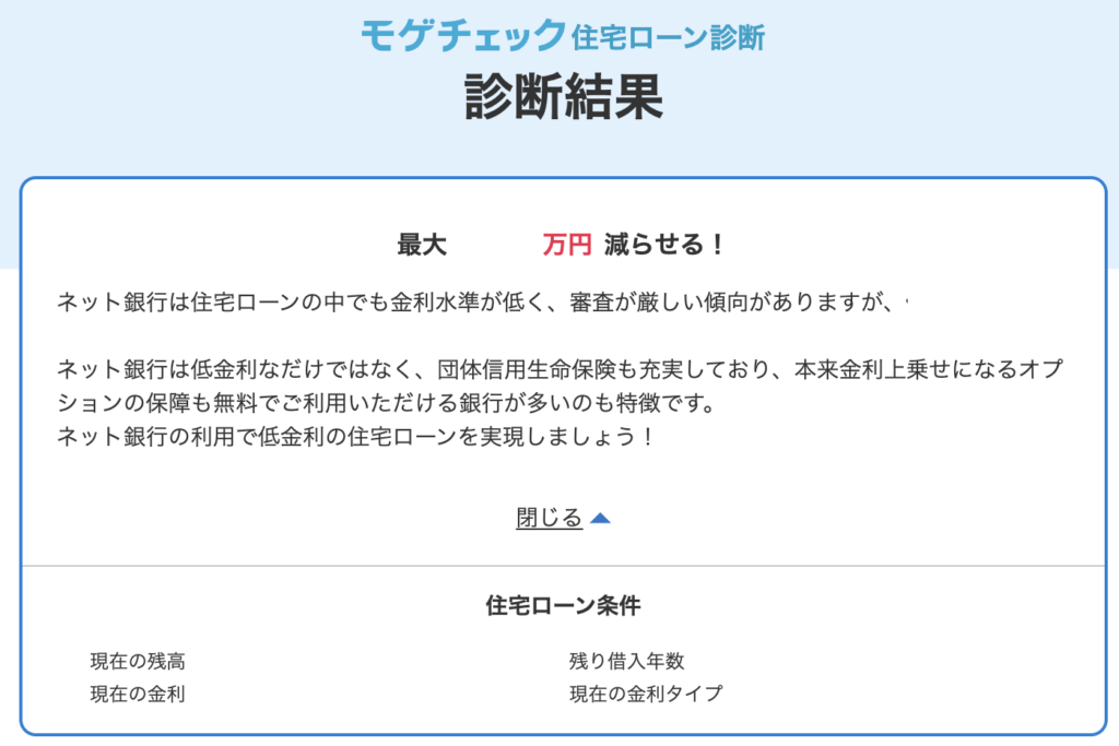 気になっていれば、とりあえずモゲチェックで試算してみることをおすすめします。